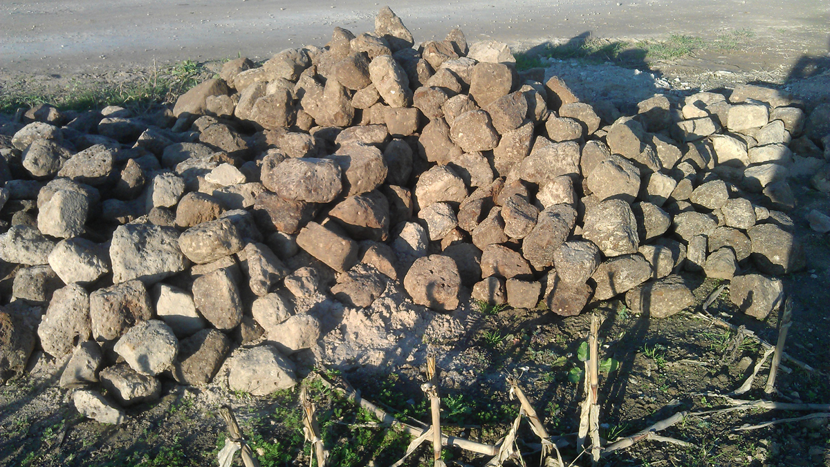 Sinds het begin van 2015 worden in dit gebied regelmatig zeer grote concentraties van dit type bouwmateriaal uit de zandwinplas opgezogen. Duizenden, veelal in specifieke wigvorm bekapte, tufsteenblokken zijn er door de werkgroep verzameld. Soms zelfs samen met fragmenten van eikenhouten palen en planken. Concentraties die vaak op locaties gevonden worden waarvan we nu weten dat de vondstcontext rivierafzettingen uit de Romeinse tijd betreft. Ook weten we dat vergelijkbare concentraties, ook voornamelijk wigvormige blokken tufsteen, door amateurarcheologen in de jaren negentig zijn aangetroffen bij de aanleg van de jachthaven in de Lithse Ham. Duiden al deze vondsten samen dan misschien toch op de resten van een verspoelde Romeinse brug? |