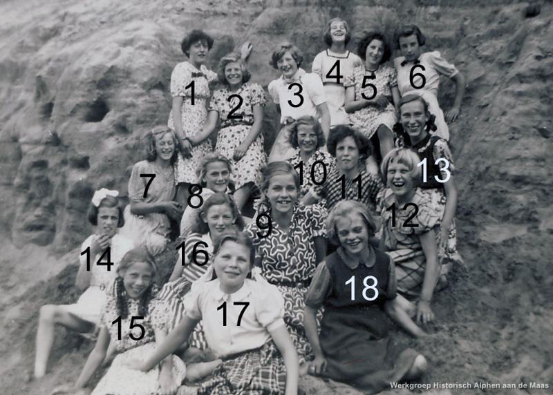 De foto hieronder is van dat zelfde kamp. Hier zijn alle meisjes niet in uniform, maar in zomerjurkjes gefotografeerd.