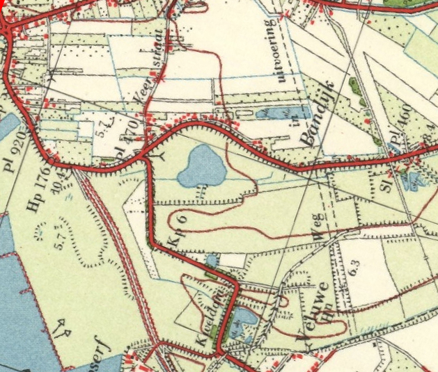 Op bovenstaand kaartje is de dijk die we tegenwoordig gebruiken de 'Nieuwe Maasdijk lang 710 el'. De Van Heemstraweg is honderd jaar later aangelegd, en zou op dit kaartje aan de rechterkant van boven naar beneden moeten worden getekend.