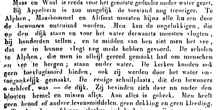 Het water stroomde naar Alphen en liep daar over de dijk de Maas in! Daarbij werd zelfs een schip van de Waal de polder in gezogen.