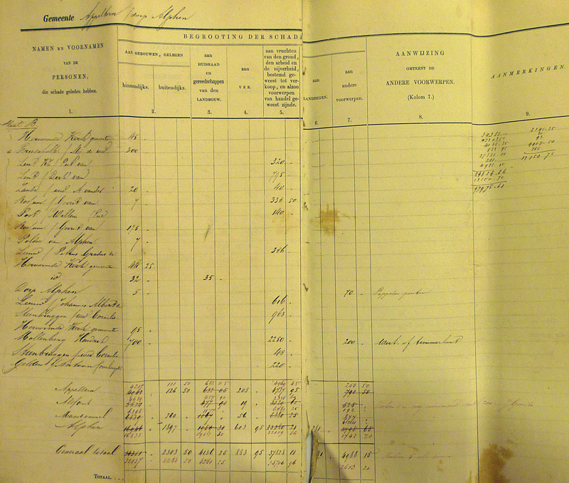 Toen men een begroting maakte van de schade kwam men voor Alphen op een bedrag van ruim 22.000 gulden.