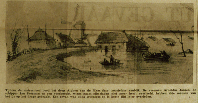 Slechts de veermannen Arnoldus Janssen en Jan en Hermanus Prosman deden in Alphen met hun boten heldhaftig werk, waarvoor zij later een eervolle vermelding kregen.